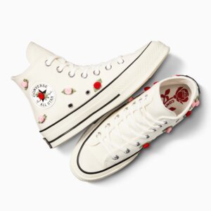 Linha Bem Me Quer, Mal Me Quer mescla modelos icônicos da marca com outras silhuetas de toque romântico, que surgem a partir do Chuck Taylor