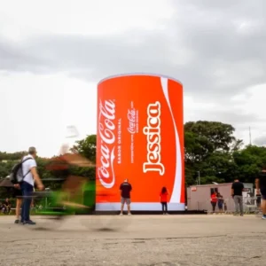 Recentemente, a Coca-Cola levou uma lata gigante ao Parque Villa-Lobos, SP, em formato de LED. Permitindo que os consumidores personalizem com seus nomes, a lata