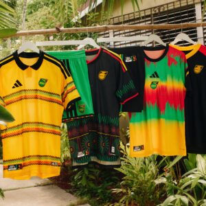 Os uniformes oficiais de jogo celebram a alegria do futebol e da música na cultura jamaicana, além de homenagear o legado do ícone internacional Bob