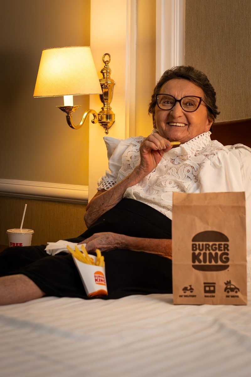 Idealizado pela AlmapBBDO, o vídeo mostra a atriz em um quarto de hotel, aproveitando o momento para saborear um combo Whopper. Enquanto isso, ao fundo, um programa de TV comenta a expectativa em torno da premiação, a torcida pelo cinema nacional e o nervosismo que costuma acompanhar a noite.