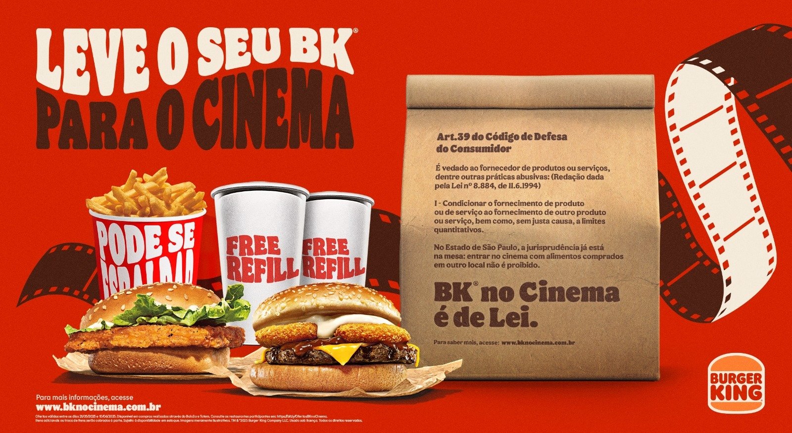 Em nova campanha, Burger King conscientiza população sobre o direito dos clientes em levar às sessões suas comidas preferidas