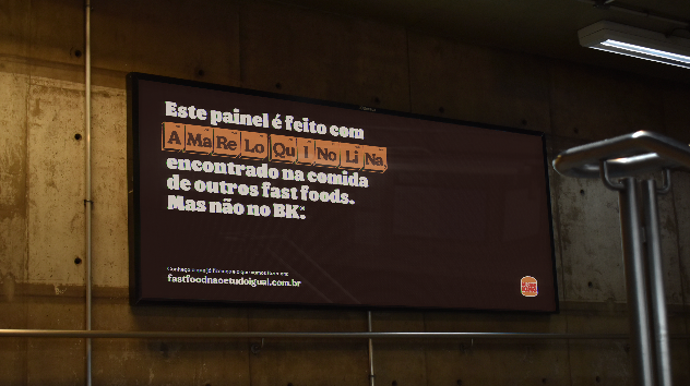 - “A tela deste outdoor é feita com Dióxido de Titânio, encontrado na comida de outros fast-foods. Mas não no BK®.”