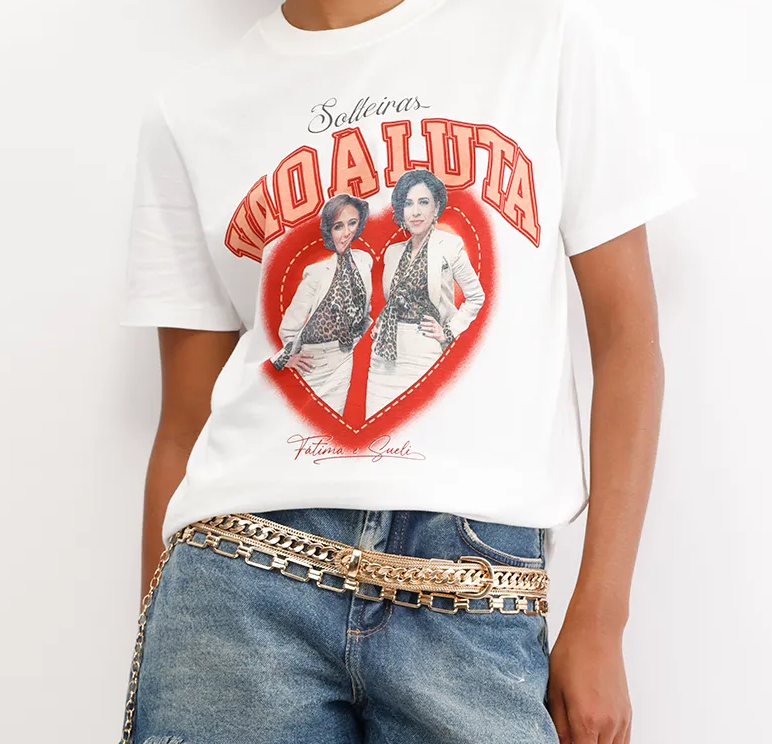 Com proposta leve e bem-humorada, as camisetas trazem estampas com frases clássicas que representam momentos inesquecíveis da série, como “Sofrendo assim por causa do Jurandir?”, “Uma pessoa que precisa de aumento”, “Soltinhas na pista”, “O tempo está passando Sueli” e “Solteiras vão à luta”.