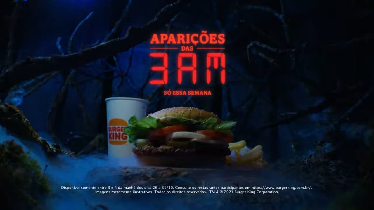 O Burger King é conhecido por suas campanhas de Halloween, e este ano a marca está de volta convidando a todos a enfrentar o horário mais “assustador” do dia(às 3 da manhã) para acessar ofertas especiais no aplicativo Burger King Brasil. De acordo com especialistas em atividades paranormais, esse é a hora do dia onde os espíritos, fantasmas têm maiores chance de aparecerem.