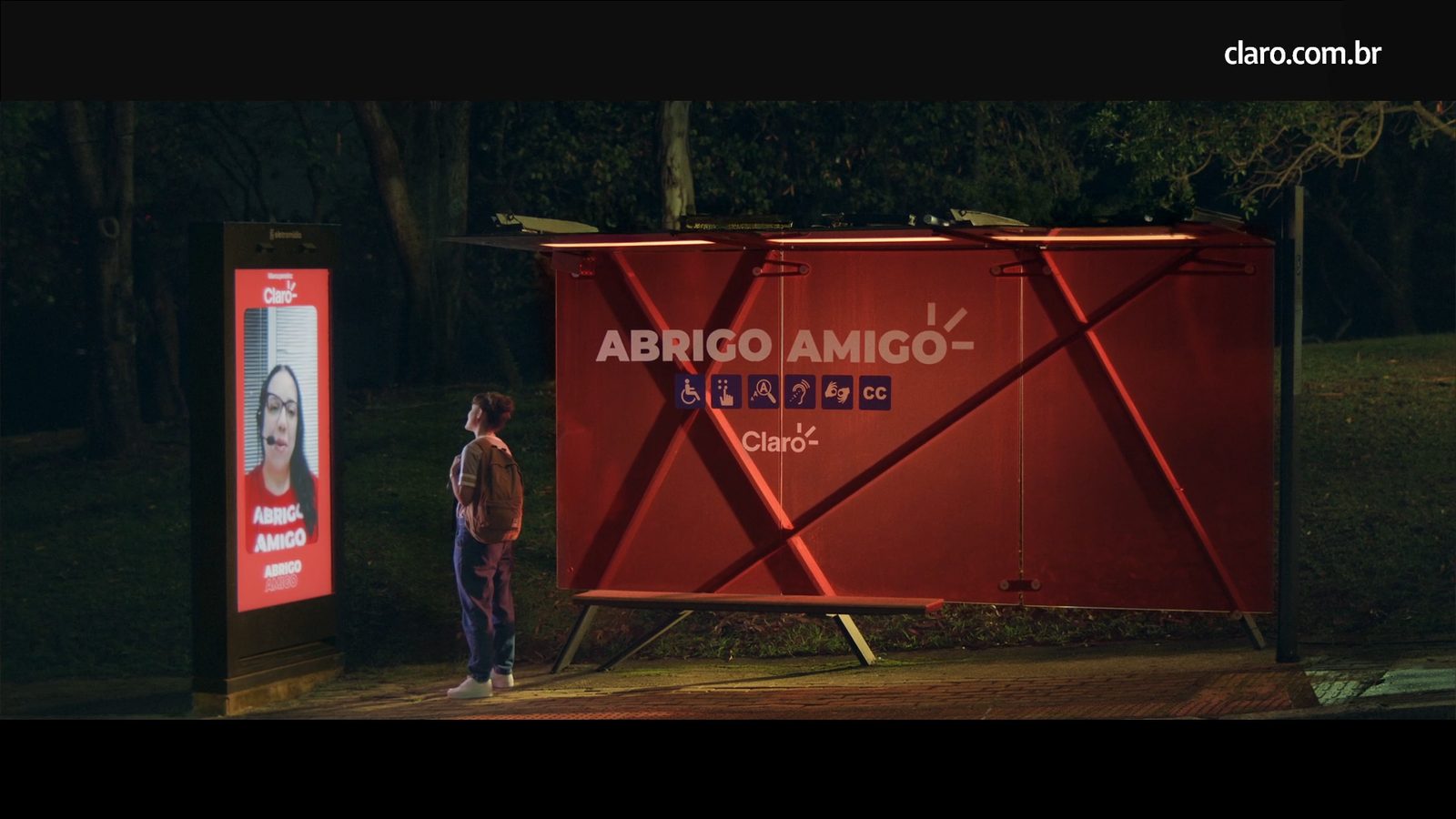 • é também a Claro que usa sua expertise e a inovação como ferramenta para a transformação social, com iniciativas como o Projeto Abrigo Amigo Claro, iniciativa que transforma pontos de ônibus em espaços de apoio e acolhimento, com atendimento remoto especializado para quem aguarda o transporte público à noite;