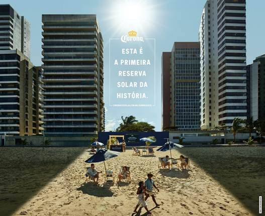 Com o objetivo de preservar o acesso à luz solar em praias públicas, a Corona lançou, em abril passado, a “primeira reserva solar do mundo”, na Praia de Piedade, no Recife. A marca de cerveja arrendou um terreno de frente para a praia para limitar a altura dos edifícios no espaço, a fim de impedir a potencial obstrução da luz solar e garantir que ela permaneça por mais tempo na areia. Deu certo! Tão certo que virou dois troféus no Festival de Cannes.