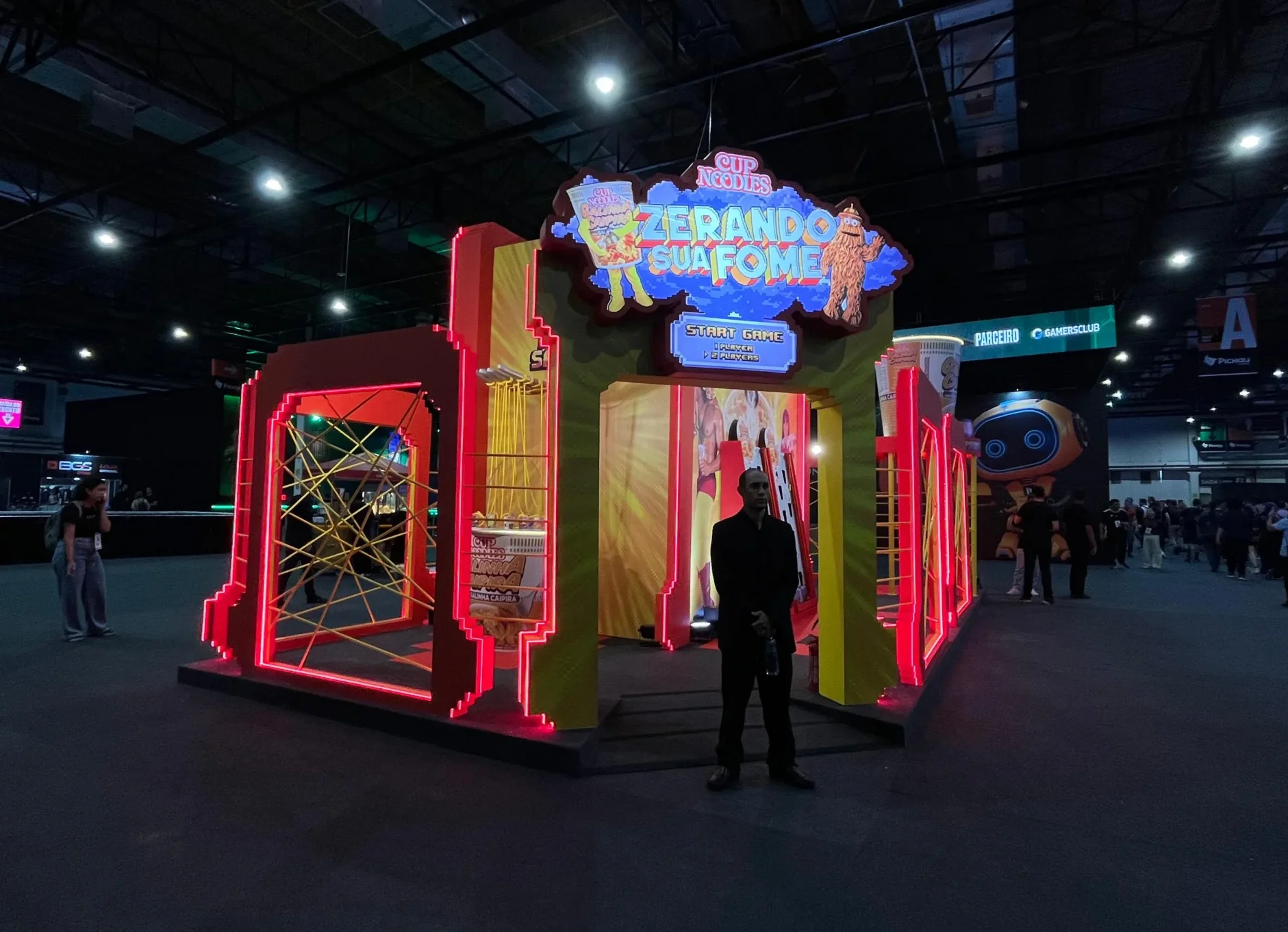 A Cup Noodles inovou com um jogo em que o participante precisa conseguir escapar e a TCL liberou seu estande para os gamers testarem a demo do novo Call of Duty – já que é a TV oficial do jogo.