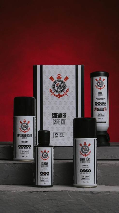 A Kings Sneakers, maior rede de streetwear do Brasil, anuncia o lançamento de uma linha oficial de cuidados com tênis, chuteiras e calçados licenciada pelo Corinthians. A iniciativa é fruto de uma parceria com a Bonton, a mais tradicional indústria brasileira especializada em soluções para limpeza, proteção e conservação de calçados, presente em mais de 40 países e pioneira no segmento “shoe & sneakers care” no Brasil.