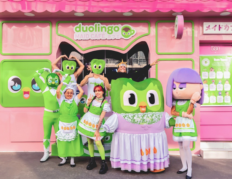 Por isso, o Duo mostrou que está antenado nas tendências e preparou uma ação para os alunos brasileiros em um Maid Café, tipo de cafeteria muito popular na cultura japonesa, com seus elementos diferentes e inusitados. A corujinha mais amada do país lançará o novo curso oficialmente em São Paulo, na Liberdade, bairro conhecido como o maior reduto japonês fora do Japão, em um café personalizado com o tema do Duolingo.