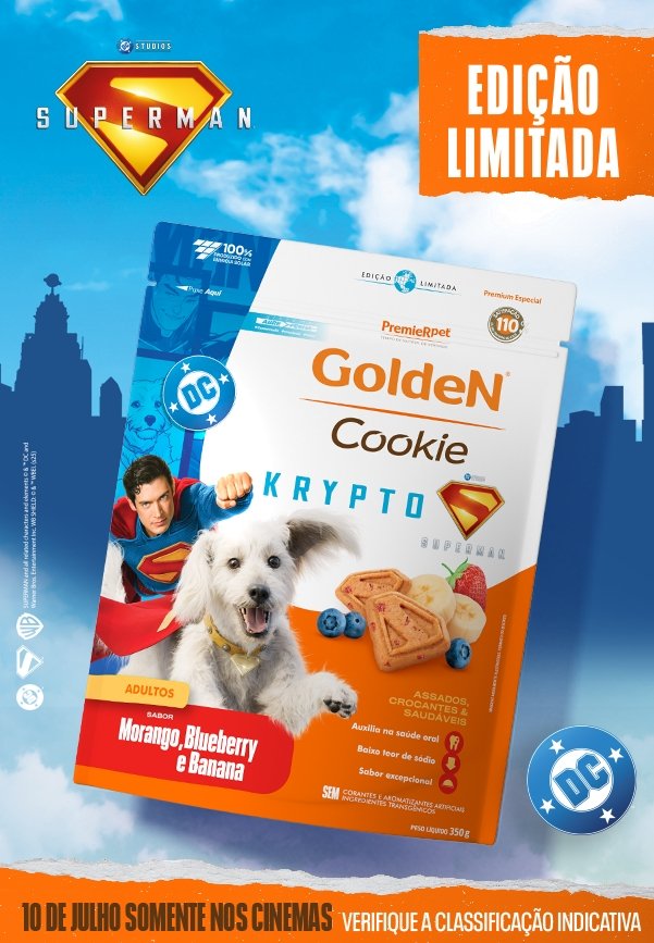 A edição limitada dos GoldeN Cookie Krypto foi pensada para celebrar não apenas a estreia do herói canino nas telonas, mas também a conexão especial entre cães e seus tutores. “Esta é uma collab inédita na história de GoldeN. Até o Superman entende o que é ter um pet e por isso criamos um produto que é a celebração da conexão única entre humanos e seus cães. Assim como Krypto é o fiel companheiro do Superman, nossos pets são como super-heróis em nossas vidas. Queremos homenagear essa relação especial com um produto que une sabor, saúde e uma pitada de aventura“, afirma Felipe Mascarenhas, Head de Marketing de GoldeN.