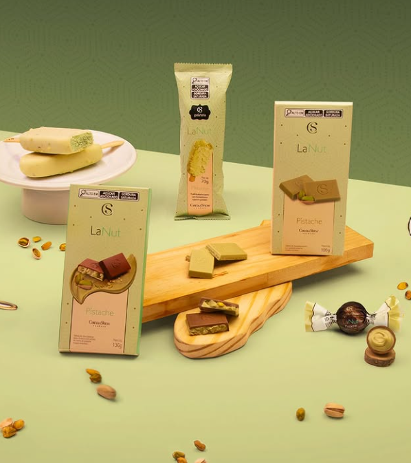 Além dos lançamentos, a Cacau Show já conta com uma linha consolidada de produtos à base de pistache, como: