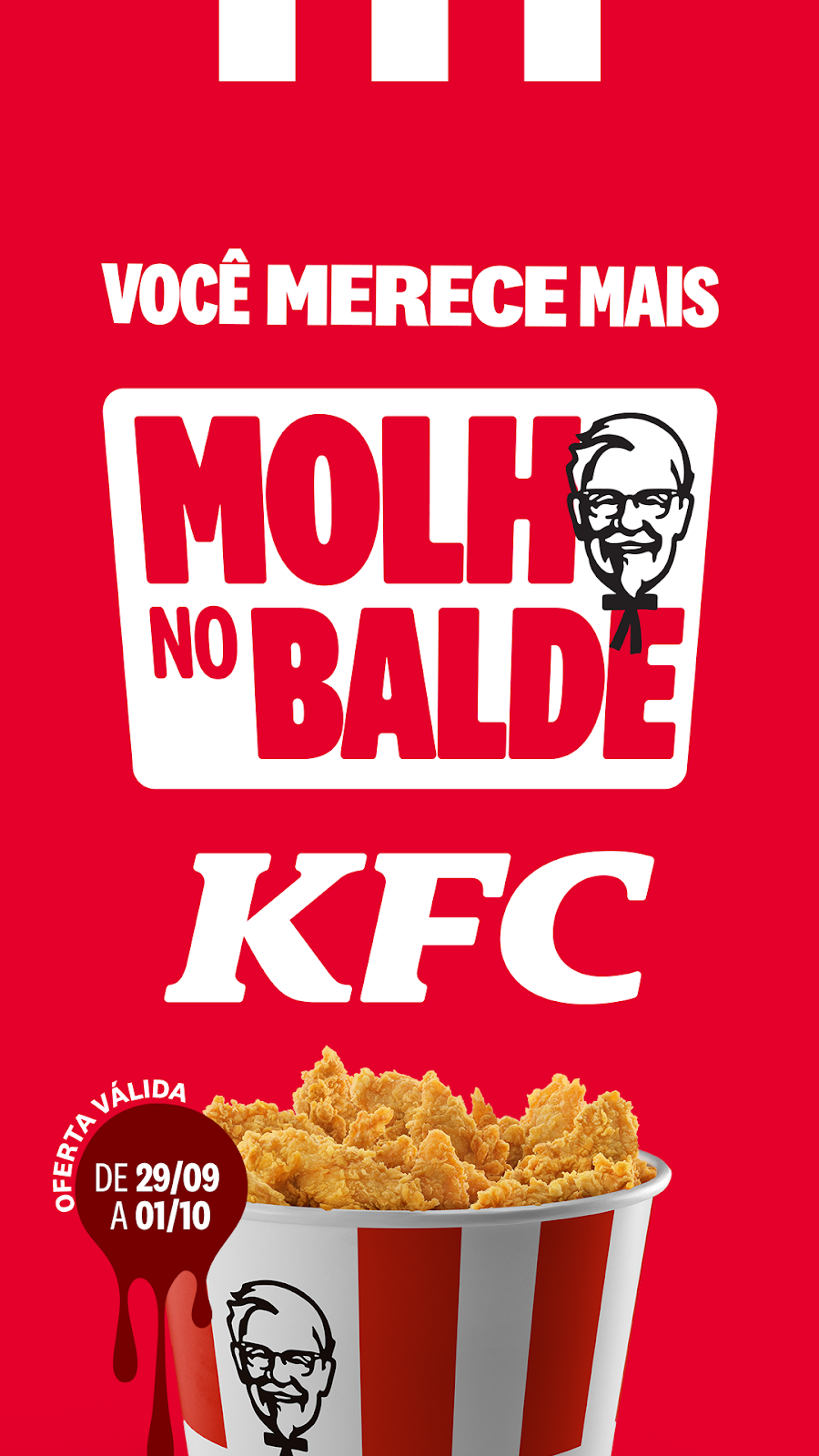O KFC, dono do frango frito mais famoso do mundo, dá continuidade à sua campanha de molhos com mais uma ação focada em experimentação: entre os dias 29 de setembro e 1º de outubro, os clientes que comprarem qualquer balde de frango nas lojas físicas participantes poderão levar um molho de 120g grátis, a escolher no sabor Maionese Temperada ou Barbecue. A marca aposta em transformar essas experiências em oportunidade de recorrência.