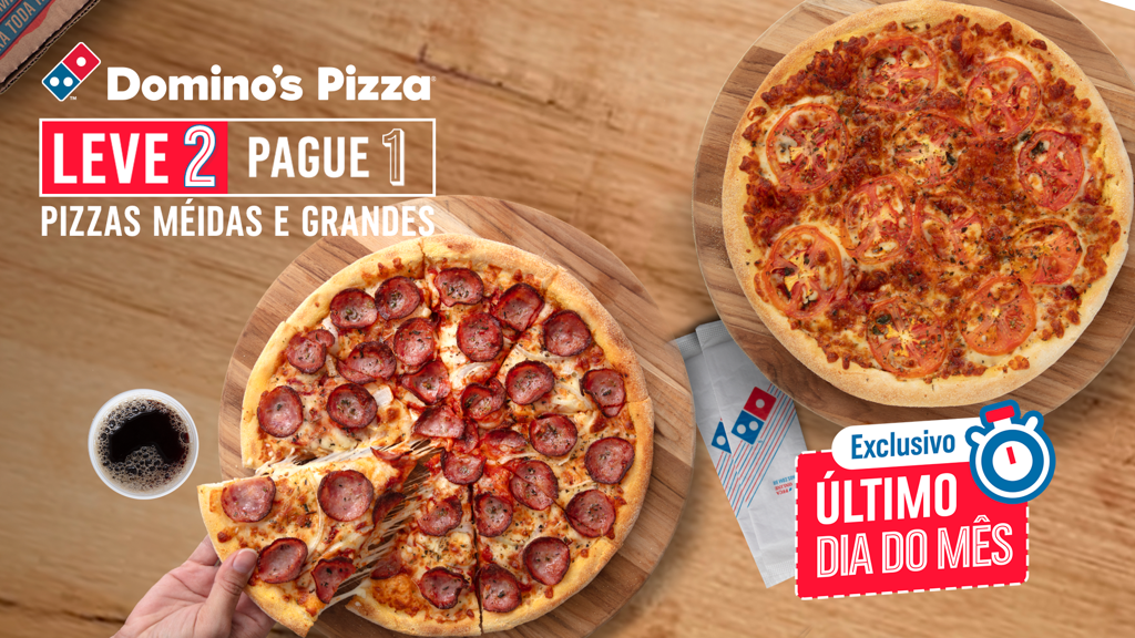 A Domino’s Pizza Brasil acaba de ampliar sua promoção mais querida e lança a “Last Chance”, uma oferta especial para o último dia de cada mês. Agora, além das tradicionais terças em dobro, os clientes poderão aproveitar essa condição imperdível também no fim do mês: levando duas pizzas, a de menor valor sai de graça.
