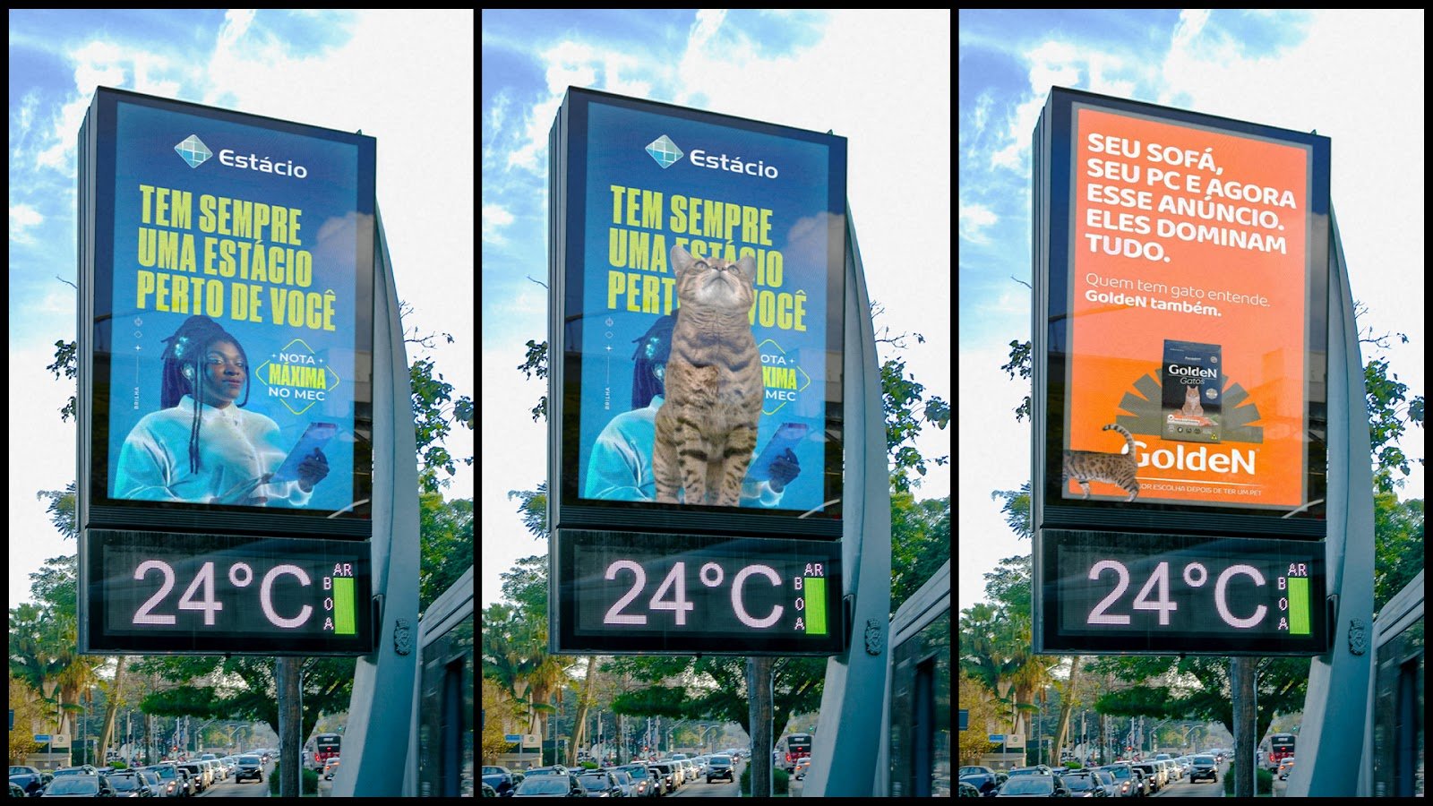 Com criação da Euphoria Creative, a ação brinca com o comportamento dos felinos de estarem por toda a parte, inclusive em propagandas de outras marcas como, JCDecaux, Estácio, Wellhub e Ticket