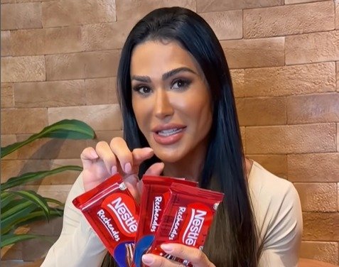 Na ação, a ex-BBB experimenta a linha Nestlé Recheados, composta por tabletes com recheio cremoso inspirados em três sabores já conhecidos do público: Prestígio, Negresco e Charge. O conteúdo, divulgado nas redes sociais, aposta em um tom leve e bem-humorado para resgatar a expectativa criada em torno do consumo de chocolate pela influenciadora.