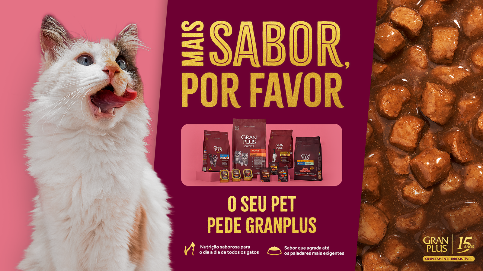 Para muita gente, comer é mais do que nutrir: é desfrutar de uma verdadeira experiência sensorial. A crocância, a calda, o brilho e o aroma dos alimentos, por exemplo, fazem toda a diferença na hora de saborear os pratos. E é justamente essa relação com o prazer de comer que GranPlus, marca premium especial de pet food da BRF Pet, quer mostrar na nova fase da campanha “Mais Sabor, Por Favor. O seu pet pede GranPlus”. Criada pela agência Bold, a ação também celebra um momento especial: o aniversário de 15 anos da marca.