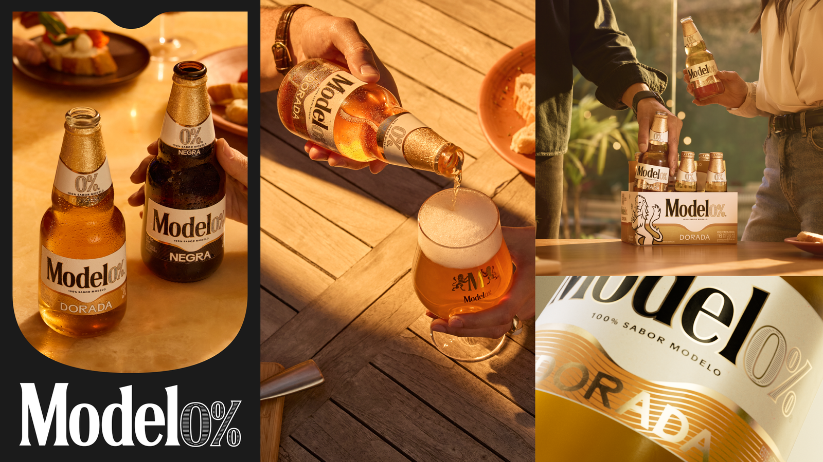 A Modelo não alcoólica é uma nova marca desenvolvida em colaboração com a GUT México e a GUT Design, onde criou-se desde o nome até o design e a estratégia, uma colaboração criativa para redefinir o que uma bebida não alcoólica pode ser. “Nosso desafio foi traduzir um novo comportamento de consumo sem perder a alma centenária da Modelo. Modelo% é a prova de que identidade e inovação podem caminhar juntas.” comenta Murilo Melo, Global Head of Design