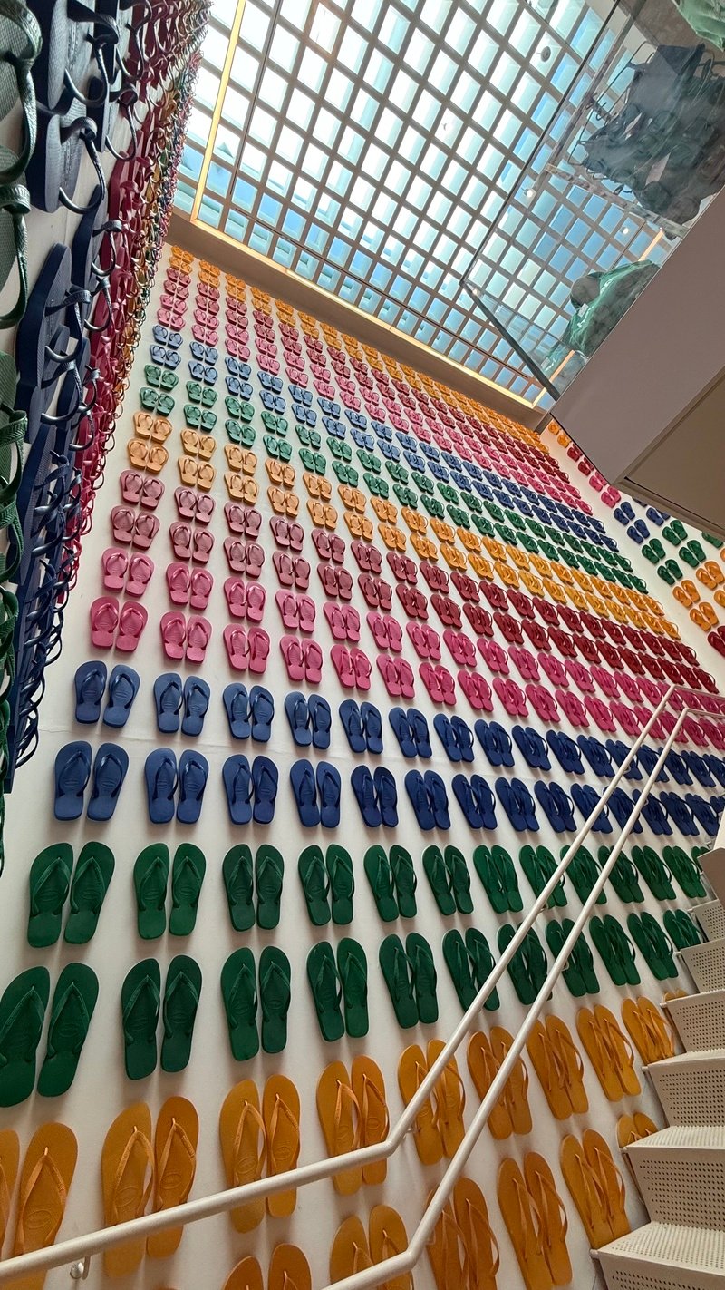Deixando o espaço com muita bossa e a cara da marca, o grande destaque é o paredão de 2.700 pares de Havaianas