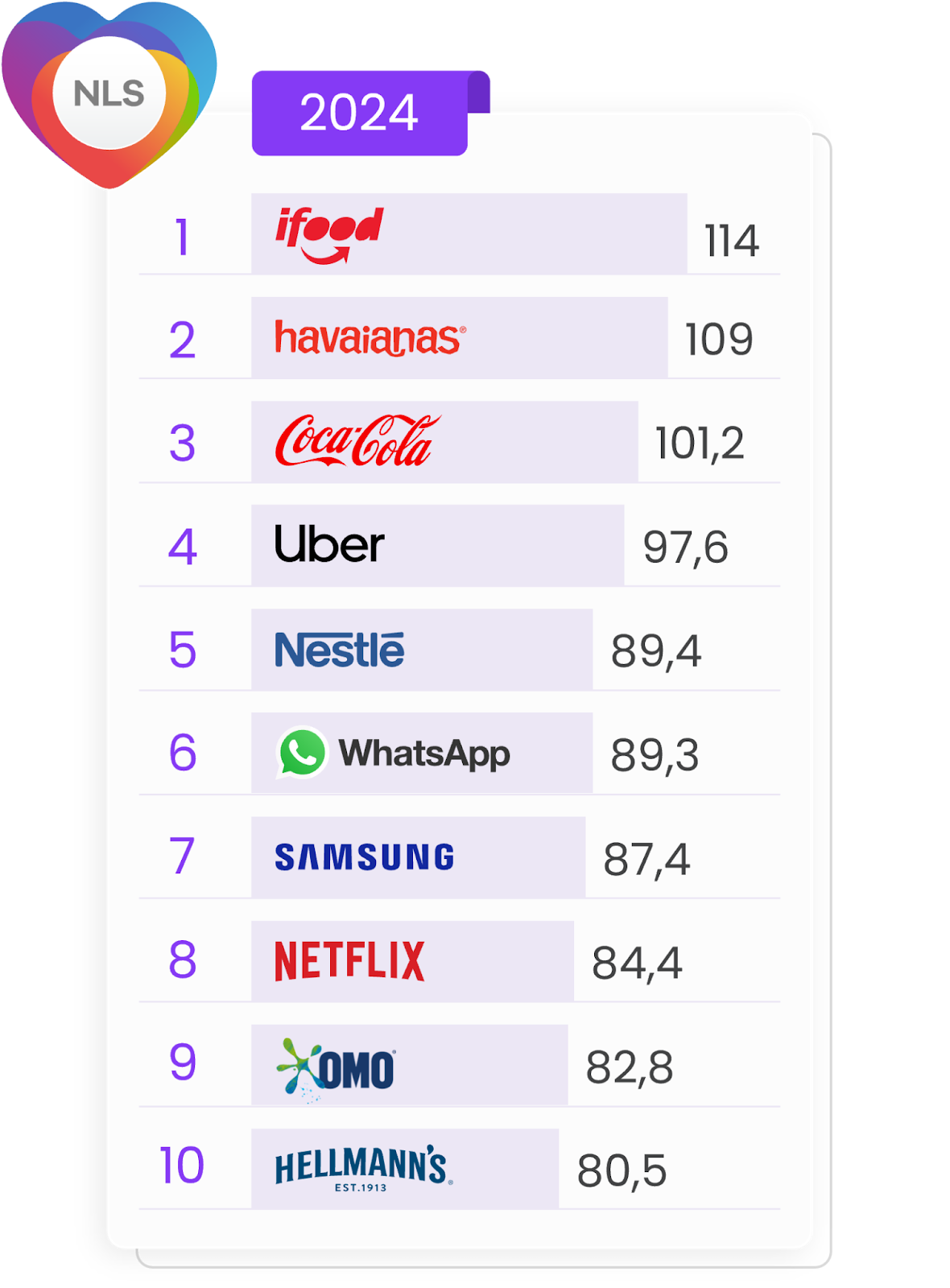 O estudo da Ecglobal é elaborado a partir do Net Love Score (NLS), um indicador que mede fatores e dinâmicas que conectam pessoas e marcas nas mais diversas dimensões. O NLS analisa a conexão emocional genuína, a performance dentro da categoria em termos de lealdade e amplitude, com base na população brasileira.