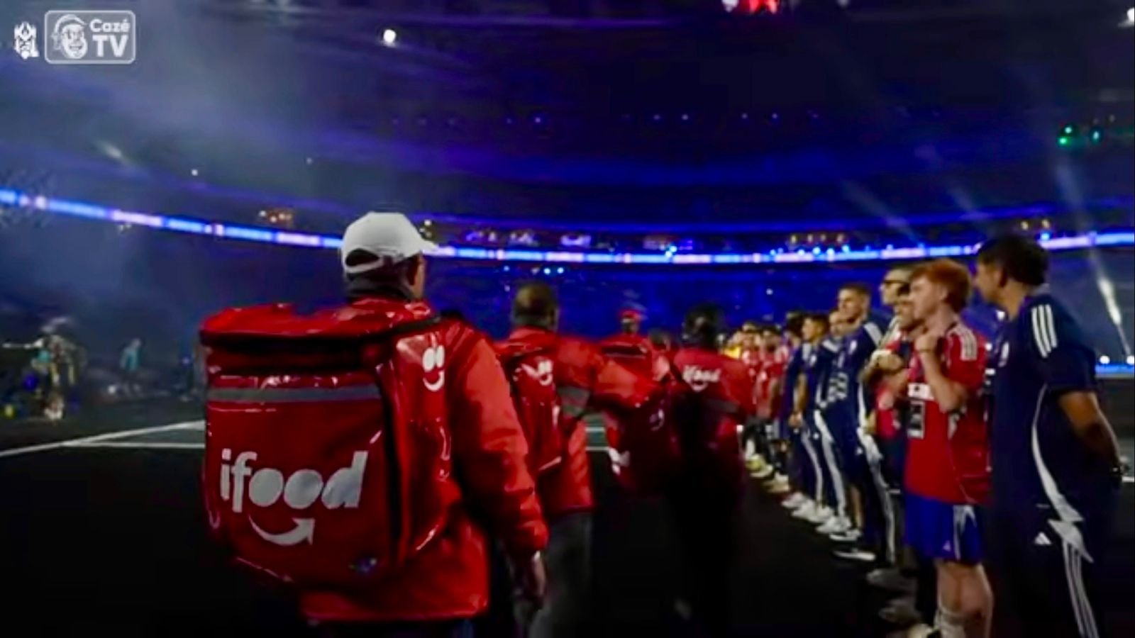 Final da Kings World Cup Nations 2026 começa com entrega das bolas em bags do iFood feita por entregadores da empresa