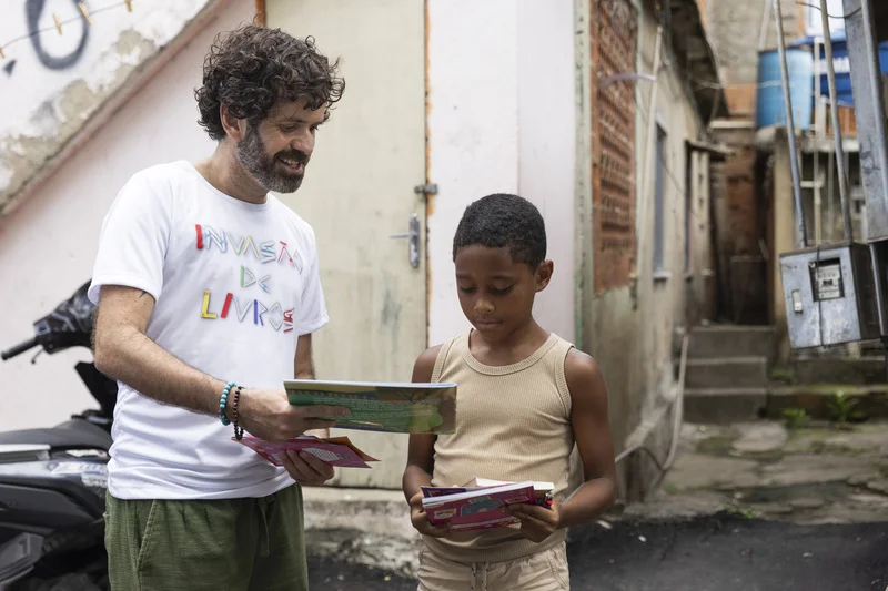 As ruas dos Complexos do Alemão e da Penha foram tomadas por histórias e sorrisos durante a “Invasão de Livros”, realizada no último domingo, dia 24. A ação, uma parceria entre a ONG Voz das Comunidades e a Bienal do Livro Rio, reuniu mais de 50 voluntários que distribuíram aproximadamente seis mil livros em diversos pontos das comunidades. Esta foi a 4ª edição do projeto, idealizado por Rene Silva, jornalista e fundador do Voz das Comunidades.