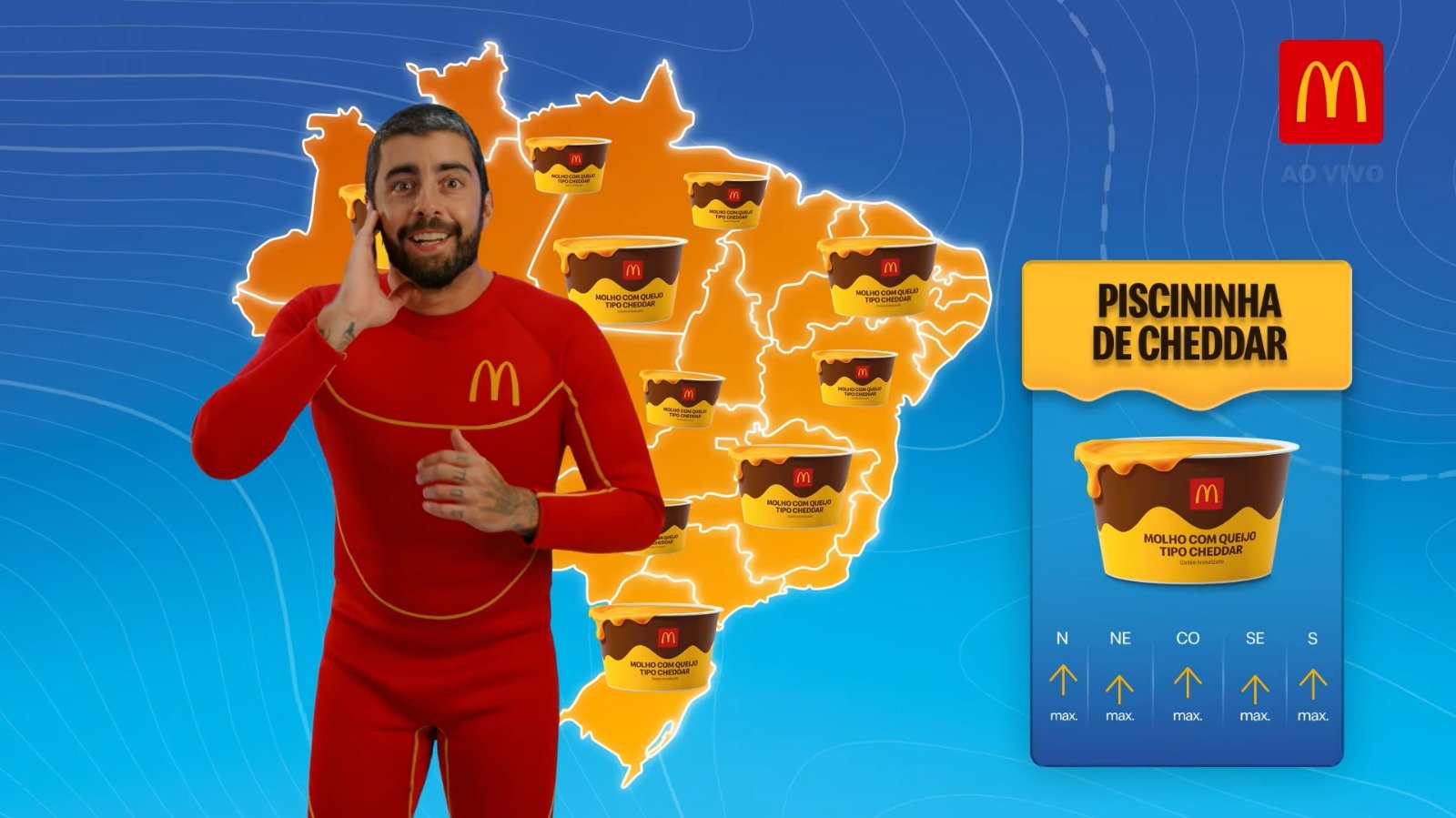 O McDonald’s escolheu o verão como ponto de partida para ampliar sua linha de sanduíches com cheddar no Brasil e convocou Pedro Scooby para protagonizar a nova campanha da marca. A comunicação, criada pela Galeria.ag, usa o surfista no papel de “homem do tempo” para brincar com a previsão de uma temporada marcada por muito cheddar no cardápio.