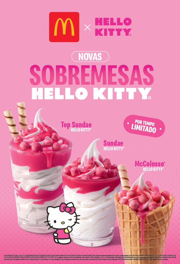 Trend é o que lança moda, que dá vontade de fazer parte, que provoca conversa. E, para criar uma trend, nada melhor que a união de duas marcas que são fenômenos mundiais. Estamos muito felizes em juntar o gostinho único do McDonald’s com um ícone do lifestyle, da moda e da nostalgia, como é a Hello Kitty, em uma campanha especial que celebra sabor, visual e a experiência divertida que só o Méqui sabe oferecer“, comenta Ilca Sierra, Diretora de Marketing do McDonald’s no Brasil.