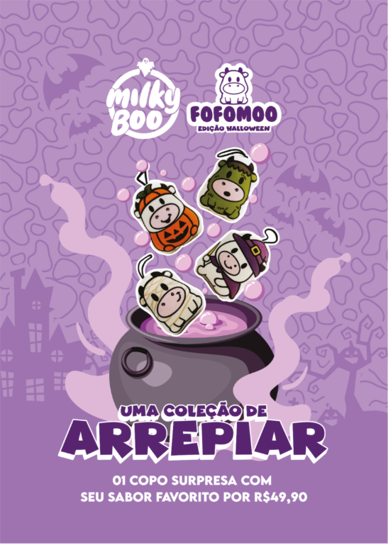 A Milky Moo apresenta a coleção FofoMoo, uma edição especial de Halloween, disponível em todas as unidades da rede a partir de 13 de outubro de 2025. A campanha traz a tagline “Uma coleção de arrepiar, mas nem tanto” e inclui quatro versões temáticas da mascote Moo, que podem ser encontradas em copos com compartimento surpresa.