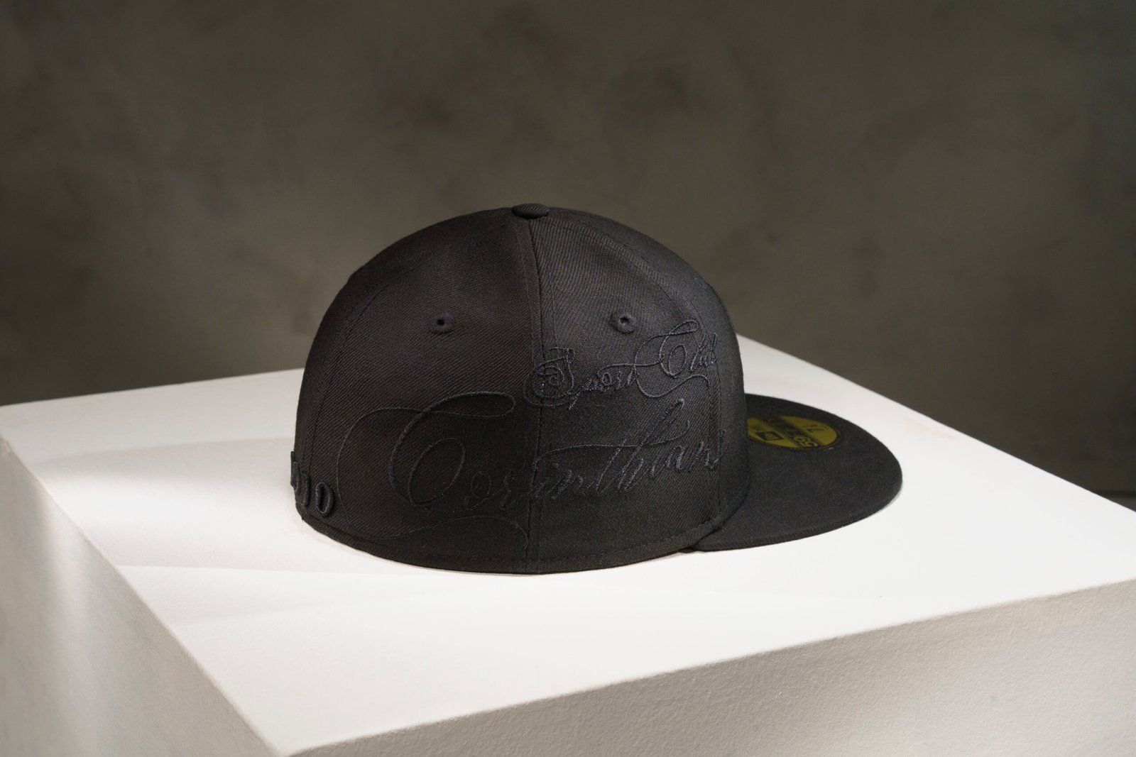 - 59FIFTY em preto monocromático: com o logotipo histórico “CP” em alto relevo e tom sobre tom, bordado com estilo manuscrito “Sport Club Corinthians” nos painéis laterais e “1910” na parte traseira, combinando elegância e personalidade.