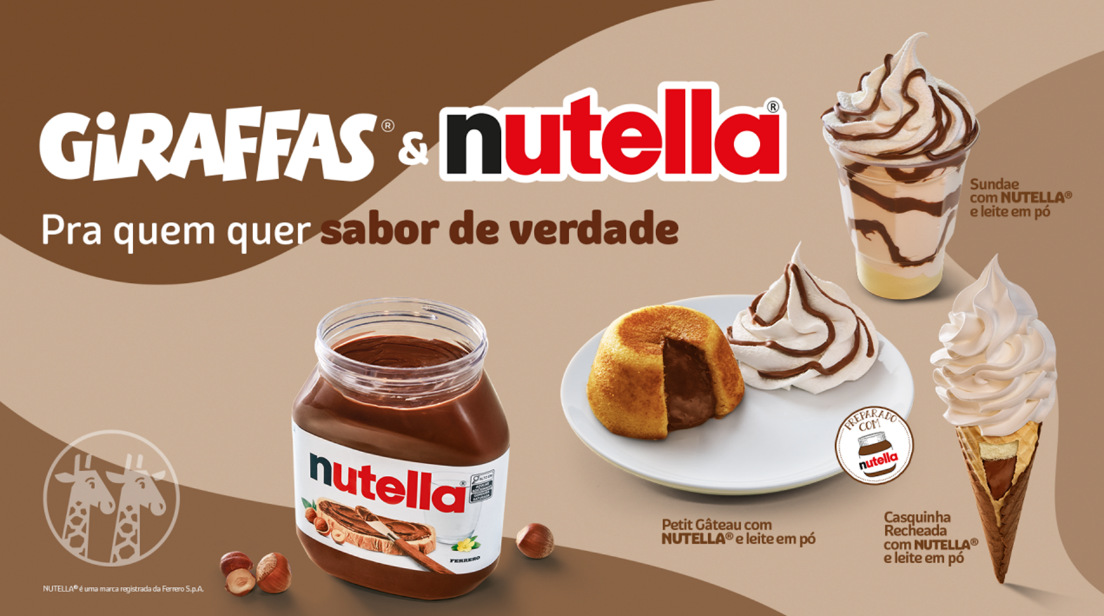 O Giraffas, maior rede de refeições completas do Brasil, acaba de lançar uma novidade que promete conquistar o coração e o paladar dos seus clientes: receitas exclusivas com NUTELLA, disponíveis em todas as unidades do País. A ação acontece por tempo limitado e traz para os consumidores sabor, inovação e experiências deliciosas.