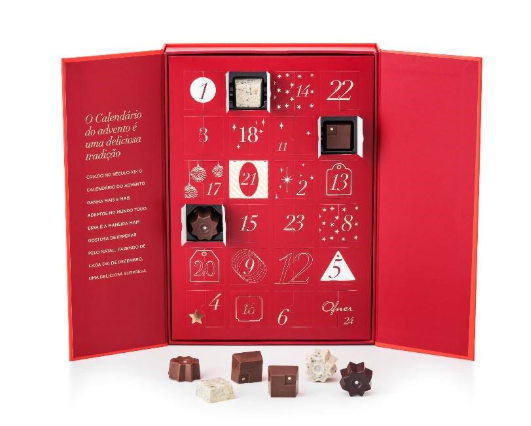 Caixa especial com bombons de chocolate Ofner para uma contagem regressiva deliciosa até o Natal. Uma surpresa por dia, de 1 a 24 de dezembro.