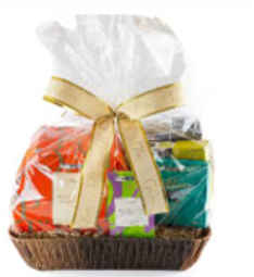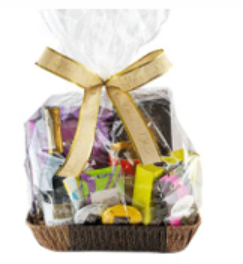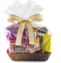 Cesta contendo: 1 pouch de dragê 100g, 1 tablete macadâmia, 1 panettone bites frutas 200g, 1 Chocolate Celebration, 1 panettone trufado 1kg, 1 lata de petit four amanteigado de limão 150g, 1 caixa de pão de mel tradicional 150g e 1 caixa de geleia sortida 130g.