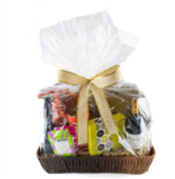 Cesta contendo: 1 panettone gotas com caixa de bombons sortidos 840g, 1 bolo rei 1kg, 1 panettone bites frutas 200g, 1 tablete de chocolate com pistache 100g, 1 tablete de chocolate com macadâmia 100g, 1 caixa de bombom Special Gold 230g, 1 lata de petit four amanteigado de limão 150g, 1 espumante 765ml e 1 vinho tinto 750ml.