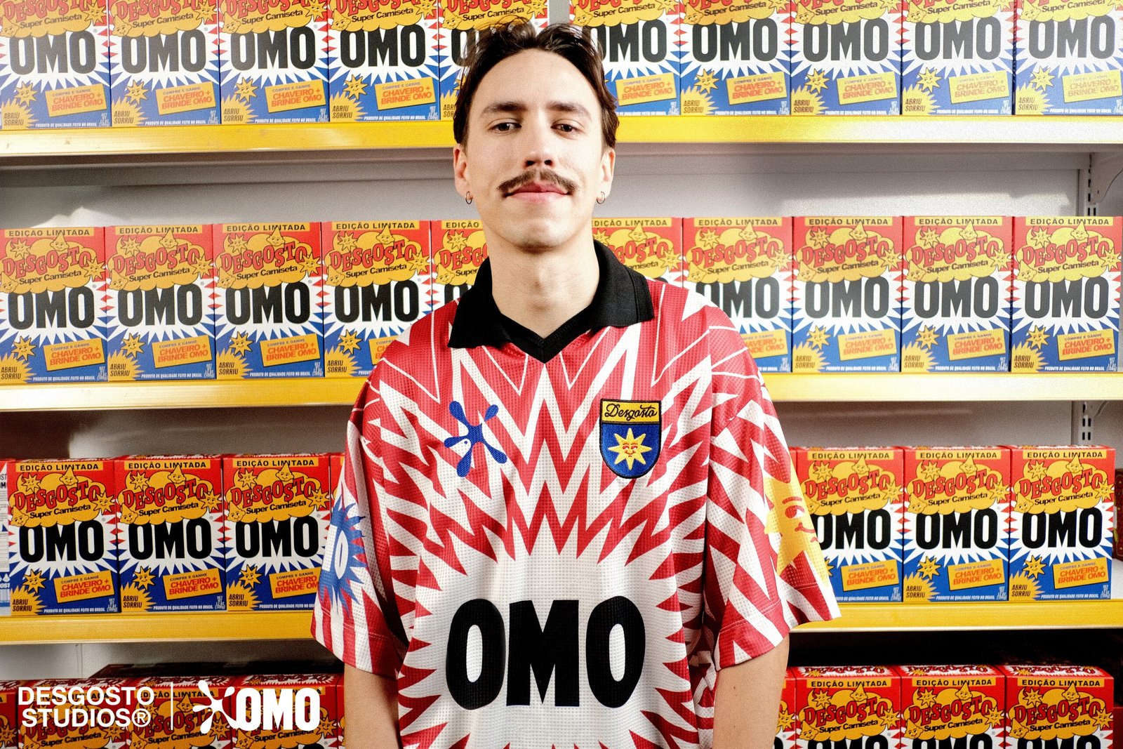 Mais do que uma linha de roupas, a parceria entre OMO e Desgosto é um convite à autenticidade, à experimentação. Lucas Garcia, Fundador da Desgosto, complementa: