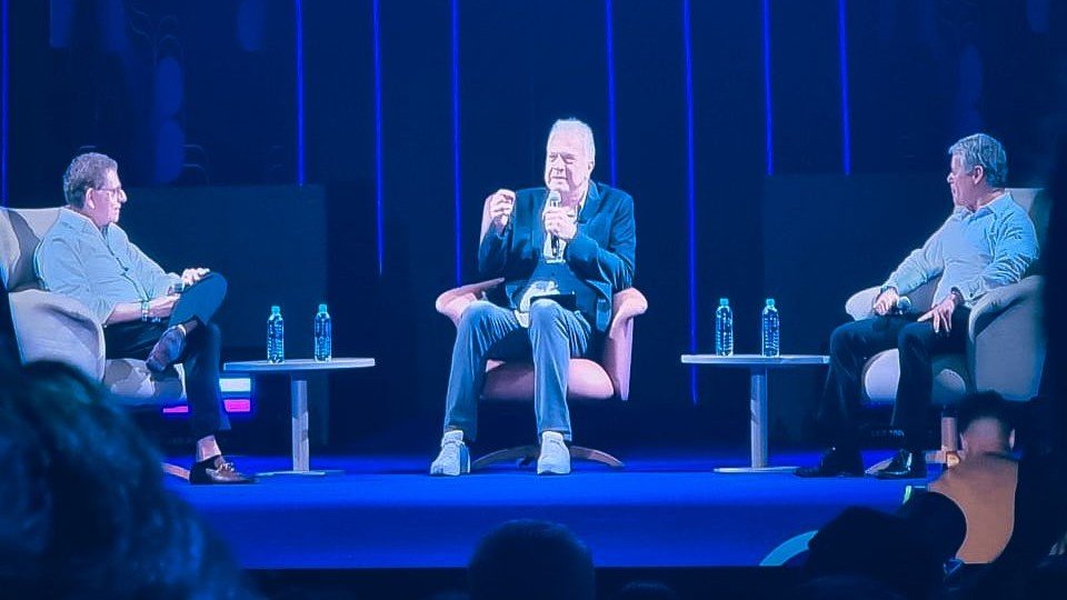 “Se você ver uma onda grande vindo, o certo é ir em direção a ela”, disse, ao defender que profissionais e empresas precisam encarar a tecnologia. Ele provocou o público com a pergunta: “Qual é a tendência do propósito e qual é o propósito da tendência?”