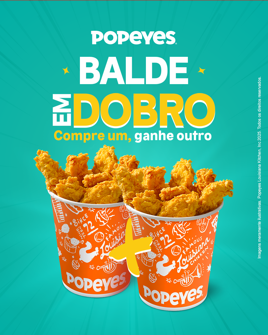 Já para os fanáticos por esportes que adoram assistir aos jogos petiscando, o Popeyes também conta com ofertas imperdíveis. Nos dias 16 e 27, finais do campeonato paulista, os consumidores poderão aproveitar para comprar baldes de frango em dobro, encontrando 2 baldes de 15 Filezinhos por R$39,90, 2 baldes de 6 Tiras de Filé por R$49,90, 2 baldes de 10 Tiras de Filé por R$59,90 e 2 baldes de 14 Tiras de Filé por R$69,90.