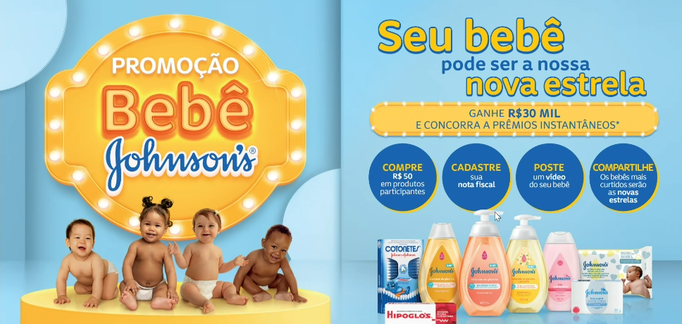 Para participar, pais ou responsáveis devem adquirir no mínimo R$ 50,00 em produtos JOHNSON’S® Baby, Hipoglós ou Cotonetes, cadastrar o cupom fiscal no site oficial da promoção e compartilhar, em um perfil público no Instagram, um vídeo do bebê (de 0 a 3 anos) utilizando um dos produtos da campanha. O conteúdo deve incluir a hashtag #PromoBebeJohnsons, marcar o perfil @jbabybr e ser publicado no feed ou no reels entre 10 de abril e 9 de junho.