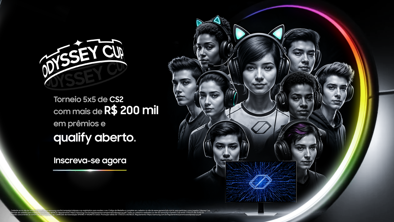 A partir desta segunda-feira (17), a Samsung anuncia a Odyssey Cup, o primeiro campeonato organizado pela marca que tem como intuito promover uma competição entre jogadores de todo o Brasil no jogo Counter-Strike 2. Os competidores têm até o dia 18/04 para fazer a inscrição. Também é possível se inscrever para participar dos sorteios de brindes durante as transmissões ao vivo das partidas. Neste caso a data limite é 25/05.
