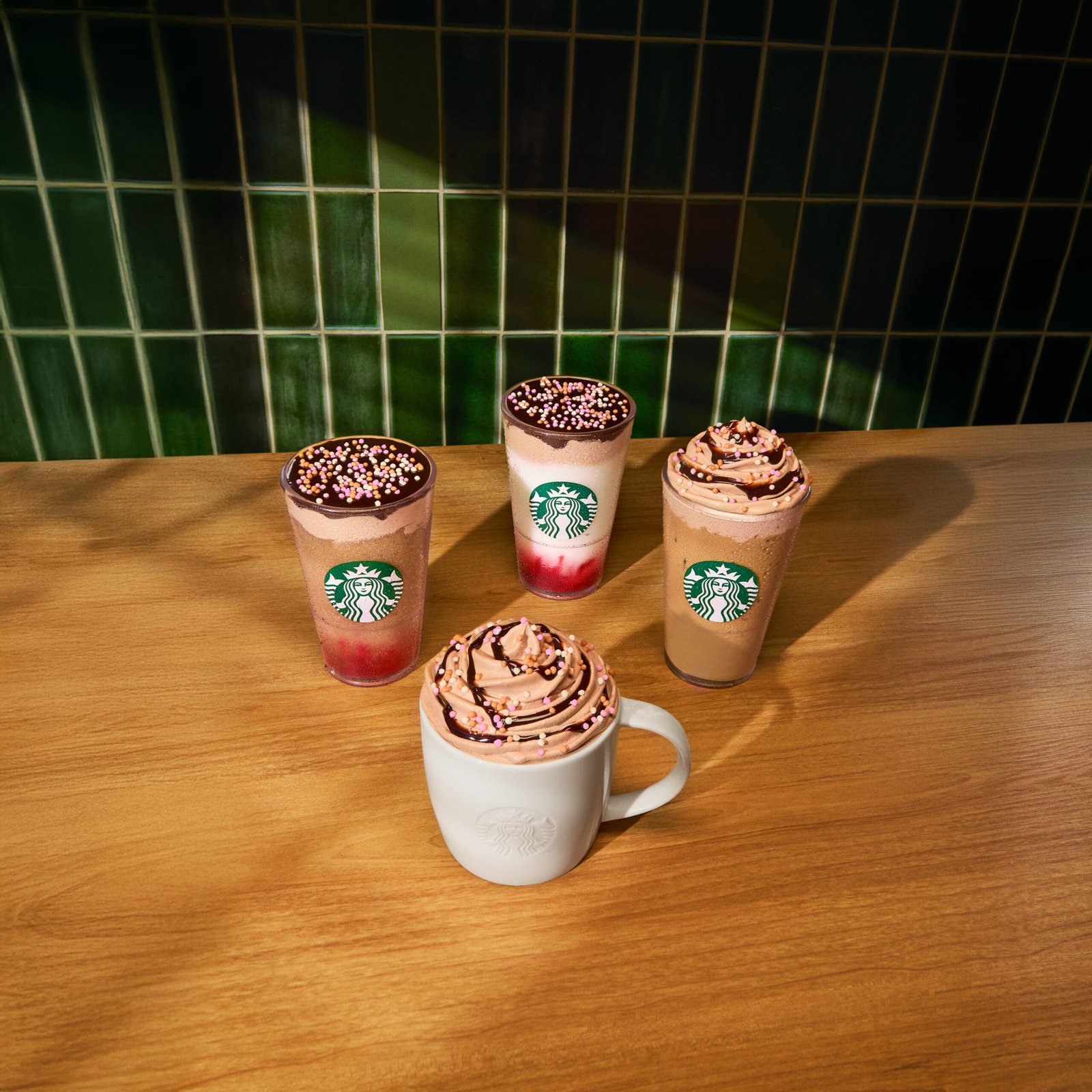Para homenagear a trajetória do Frappuccino, duas novas edições limitadas desembarcam no Brasil: o Happy Berry de Aniversário Frappuccino, uma mistura cremosa e colorida que combina morango e pitaya com mocha branco, cobertura de chantilly e confeitos cor-de-rosa para uma celebração divertida em cada gole; e o Happy Choco de Aniversário Frappuccino, uma combinação gelada e indulgente com base de café, chocolate e doce de leite, batida com gelo para uma textura cremosa e refrescante, com cobertura generosa de chantilly e finalizada com calda de chocolate e doce de leite.