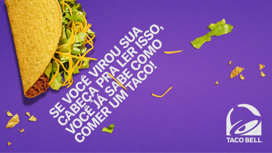 Trazendo de forma humorada e autêntica o conceito da marca Live Más, um verdadeiro convite para vivenciar novas experiências com a Taco Bell, a peça principal da campanha traz a mensagem: “Se você virou sua cabeça pra ler isso, você já sabe como comer um taco!”.