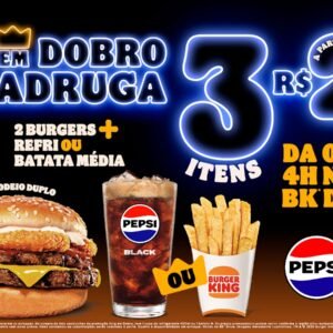 Entre 0h às 4h, quem comprar a oferta de 2 sanduíches no Drive-Thru do BK® ainda leva Refrigerante ou Batata Média sem custo adicional O
