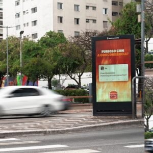 Em resposta a um tapume do concorrente instalado ao lado de seu restaurante, marca instala painel de LED com mensagens irreverentes O Burger King, já