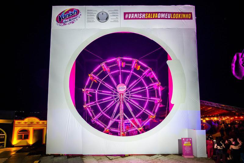 Com luzes cor-de-rosa característica da marca e envolta por uma estrutura cenográfica, a roda-gigante é o ponto de maior visibilidade da festa desde 2023 e proporciona a quem passar por lá a experiência única de entrar em uma máquina de lavar roupas. A ação faz parte da plataforma de eventos “Vanish Salva Meu Lookinho”, que leva experiências da marca para festas e shows de todo o país.