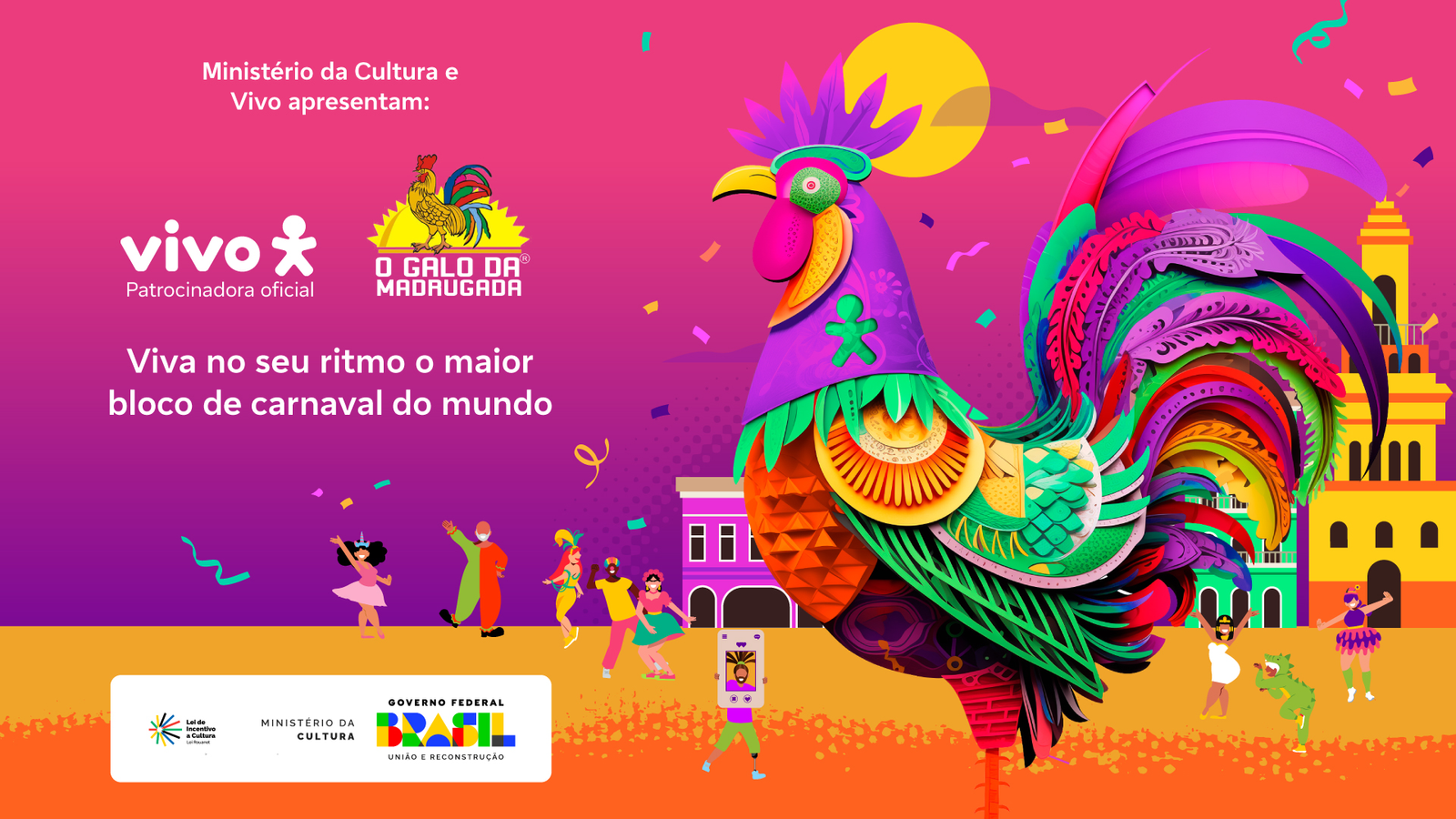A renovação do patrocínio ao Galo da Madrugada reforça a posição da Vivo como uma das maiores apoiadoras da cultura no Brasil, que investe nas artes cênicas, visuais e na música para ampliar e democratizar o acesso dos brasileiros à cultura. A empresa acredita no poder da tecnologia para potencializar o alcance das iniciativas e levar arte a todo o Brasil. Com atuação consistente em eventos culturais, a Vivo também apoia grandes celebrações como o AFROPUNK Bahia e Pará, o Festival de Parintins, o São João da Thay no Maranhão, e festivais de música como Lollapalooza Brasil, The Town e João Rock.