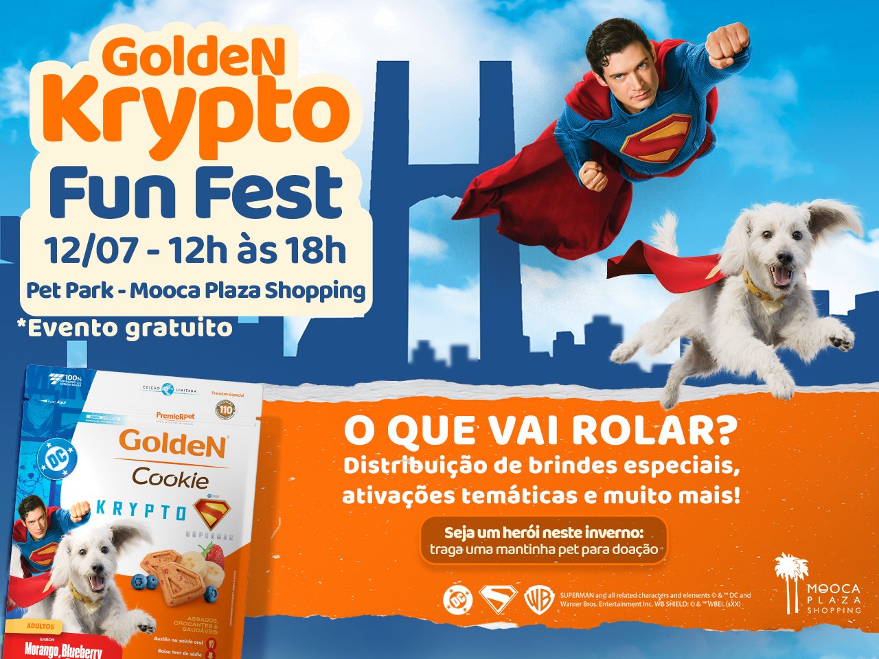 O grande destaque da parceria é a GoldeN Krypto Fun Fest, evento gratuito e aberto ao público, que acontece no próximo dia 12/7, no Pet Park do Mooca Plaza Shopping (SP). Inspirado no mundo de Krypto, o festival reúne tutores e seus companheiros para uma experiência única repleta de diversão, brindes exclusivos e atividades para toda a família.